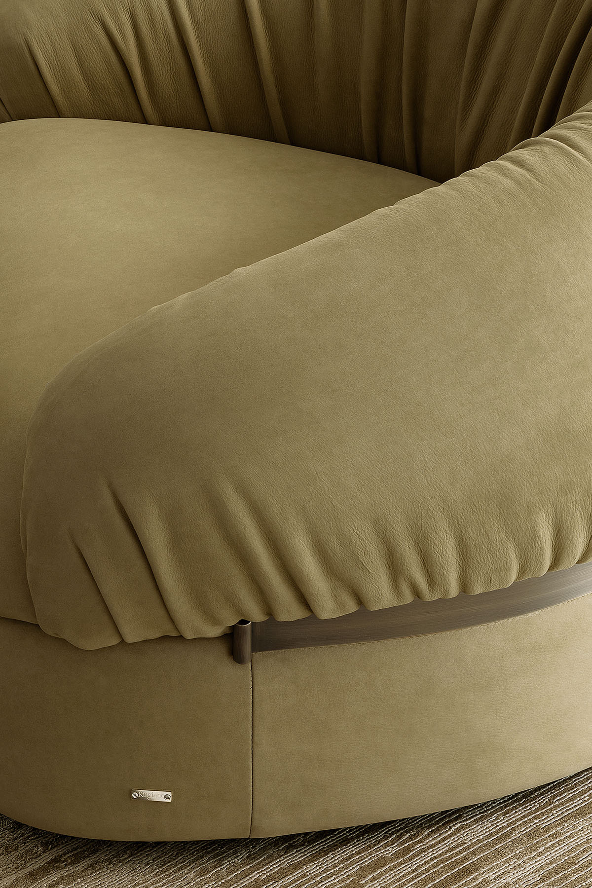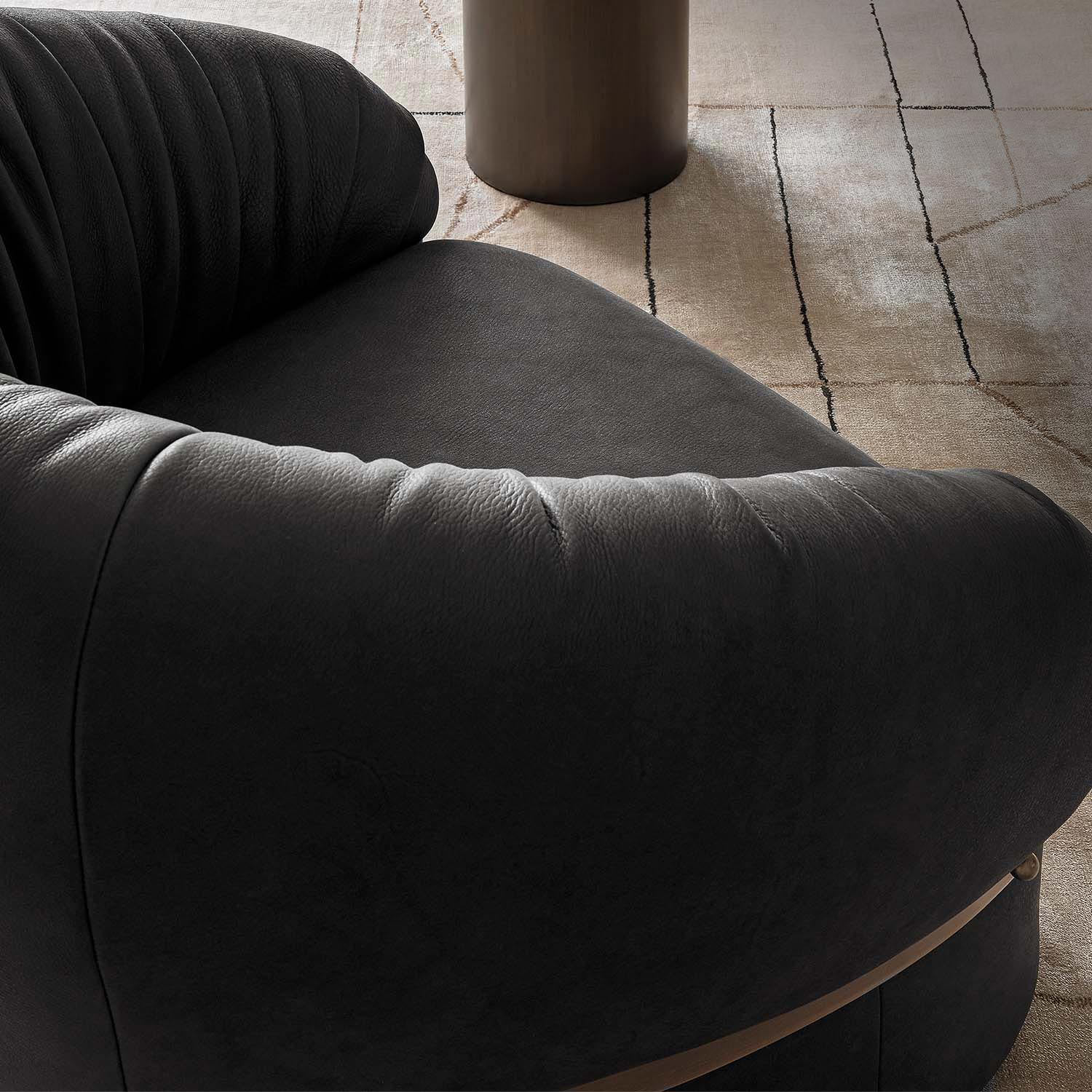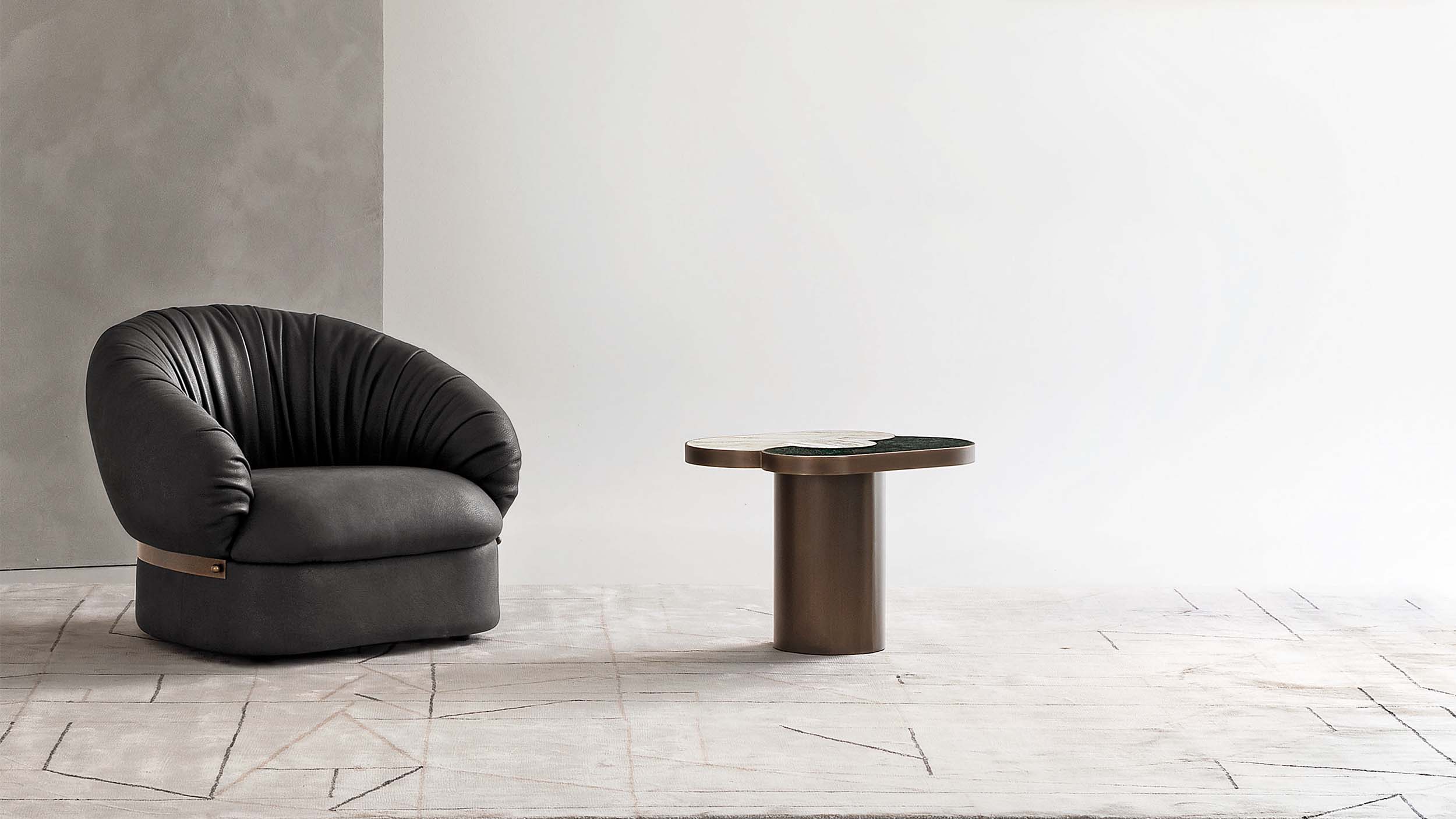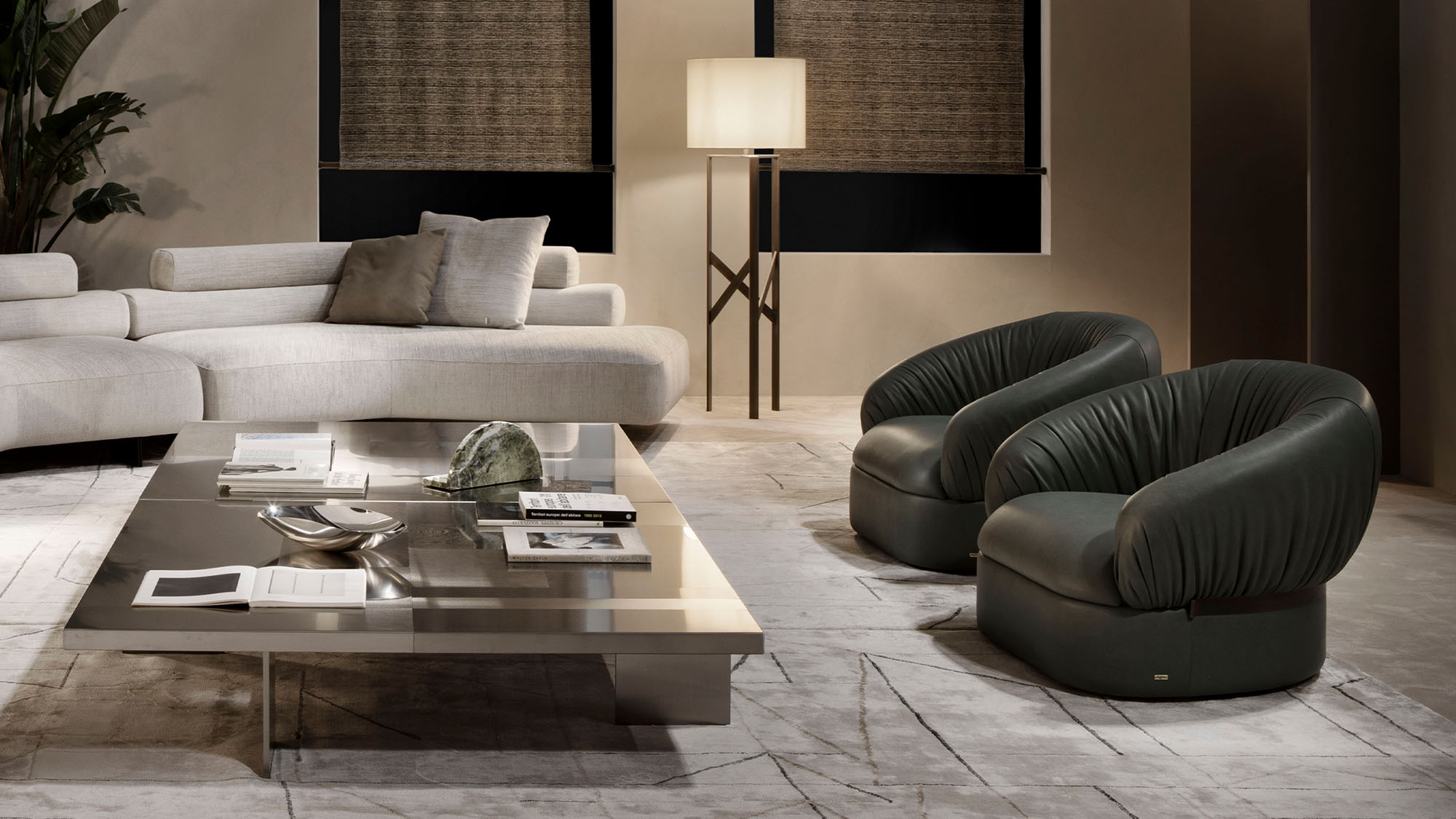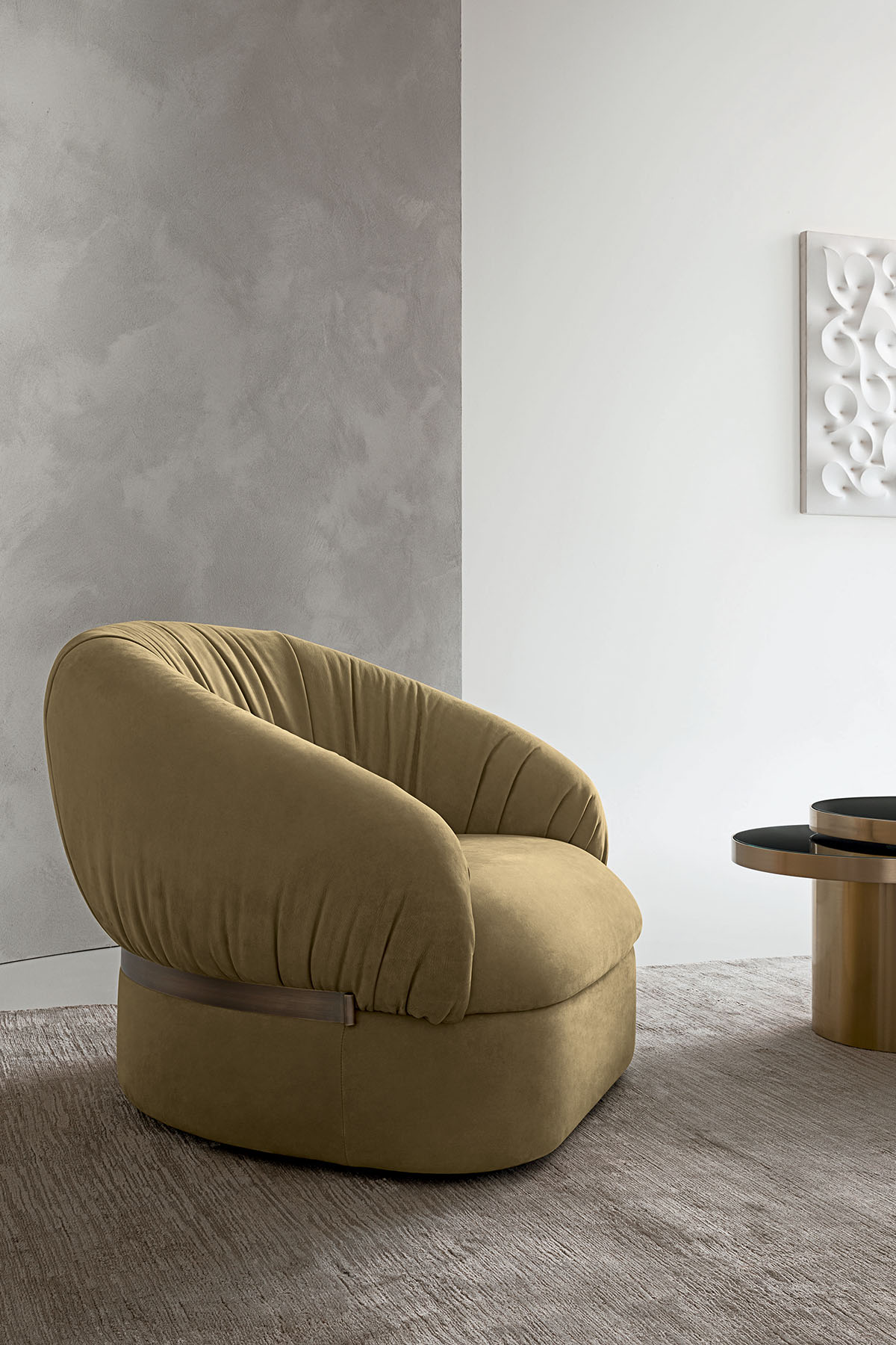 The Fandango armchair, characterized by its soft lines, is designed to accommodate the body in complete comfort and relaxation. The Backrest is designed as a continuum that complements the comfortable upholstered seat.
